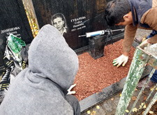 После чего водрузили новые надгробья на подготовленные основания.